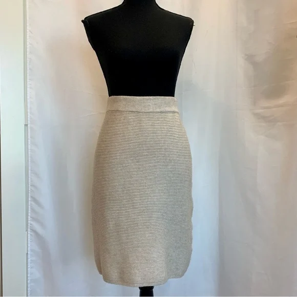 Eternelle Beige knit ribbed pencil skirt stretchy Sz L/XLThis beige wool knit skirt is an effortless way to make a fall winter fashion statement. Perfect for everyday styling, this skirt is crafted from high-quality, super soft wool that will keep you comfortable and cozy while looking your best. Its silhouette flatters the figure, while its knee-length length makes it versatile and suitable for a variety of occasions. The minimalist design adds sophistication to any outfit, making this skirt an ideal wardrobe staple.-Beige-Wool-Knit-Skirt.Wool blendMay be slight difference in colour due to lighting. Measurements are approximate.Bundle more through my closet to save on shipping.New to ? Earn $15 🤑 When you sign up with my code: Americanglam ➡️Item recorded to prevent switching of product⬅️11720225b12/6puc