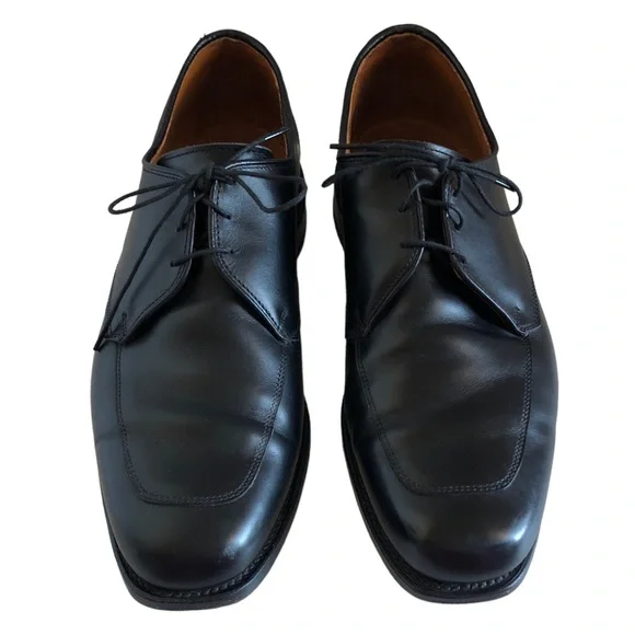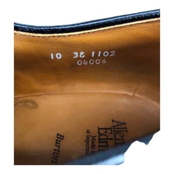 Very good pre-owned condition!Men's Size 10 WIDE (3E) Burton Moc Apron Toe Oxfords.Includes box and dust bags.Original price $365.00.Color: Black-100% calfskin leather-Handcrafted-Comfort features include a PORON (TM) cushion inner sole along with full leather linings-Classic leather sole with rubber inserts and custom heel-Made in USA*One minor exterior mark on right inner toe as pictured.Normal wear and creasing on upper leathers as pictured*
