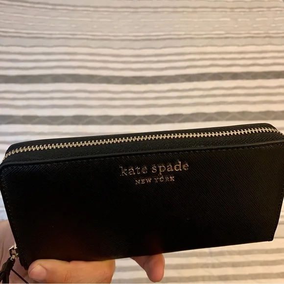 • Brand New• New With Tags• It is attached to the box and will be kept there to ensure no flaws will occur.• Brand: Kate Spade New York• Gold tone hardware• Interior: 12 credit card slots, 2 slip pockets, zip coin compartment, 3 gusset compartment, and exterior slip pocket on back of wallet.• Leather Material• Measurements in the photos• Box will be included when shipped• Smoke Free Home 🌀Offers Are Welcome!🌀