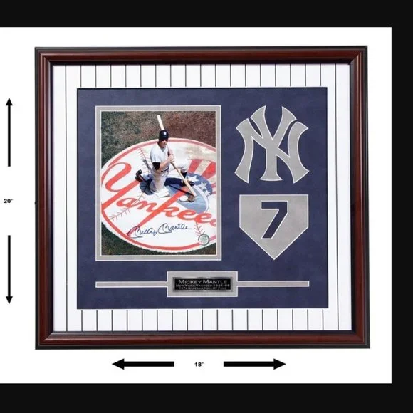 This is a beautifully designed 29x16 custom framed and original Mickey Mantle Autographed picture. This piece comes with a Certificate of Authenticity attached to the back.Experienced shipper. Item will be packaged and shipped out same/next business day (Mon-Fri) with USPSPriority Mail (typically arrives 3-5 business days but unexpected delays may occur with carrier)Thank you and Happy Shopping!