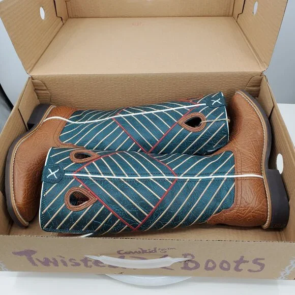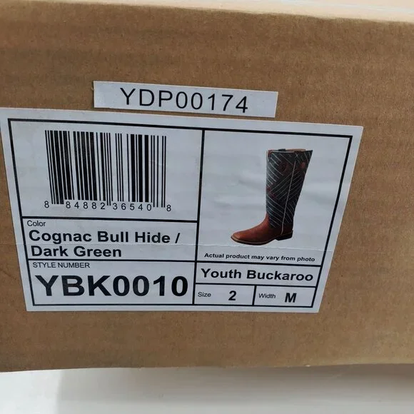 NWT Twisted X Kids Buckaroo Bull Hide Stovepipe Youth Cowboy BootsSize 2Western Cowboy Cowgirl Youth BootsStovepipeBuckaroo High TopsRanch Rodeo The Kid's 12 1/2" NWS Toe Buckaroo Boot is handcrafted with full-grain leathers and unique stitch patterns, so you'll always stand out in a crowd. A smaller take on an adult profile, the Kid's Buckaroo Boot is perfect for the great outdoors. The molded rubber outsole and block heel provide improved traction, for wherever they may need it most.Size: Unisex Kids 2Condition: New With Tags
