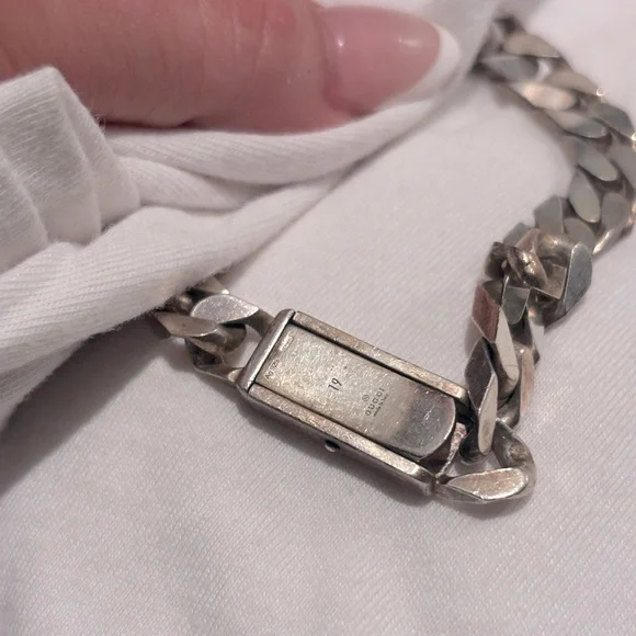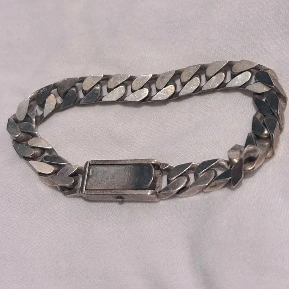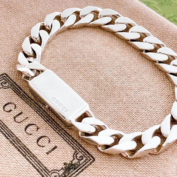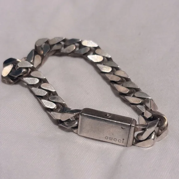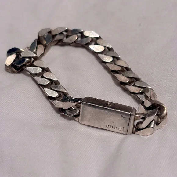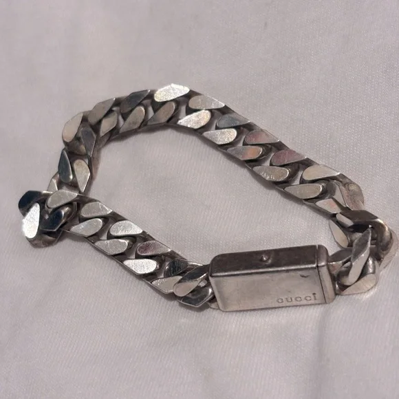 Gently used GUCCI Cuban link bracelet AUTHENTIC Minor scratches on surface. Have not had time to take it to get it buffed. Gorgeous heavy piece of sterling silver. 18cm*box is not included