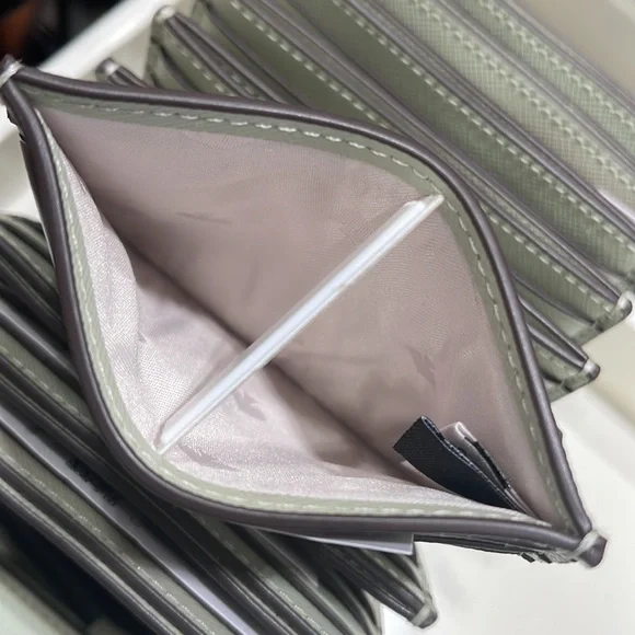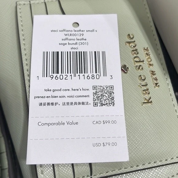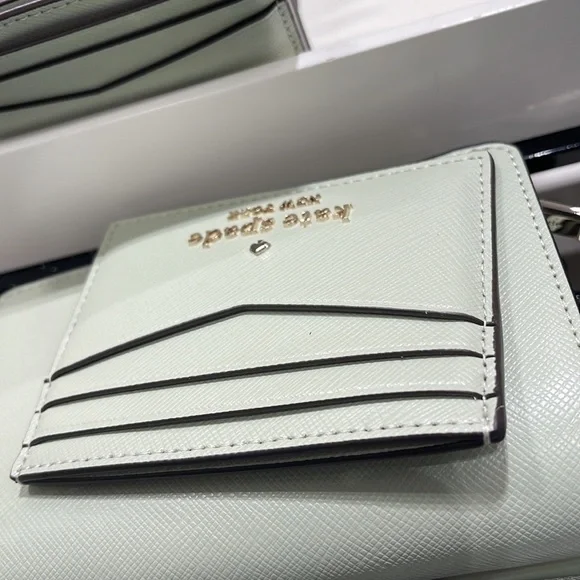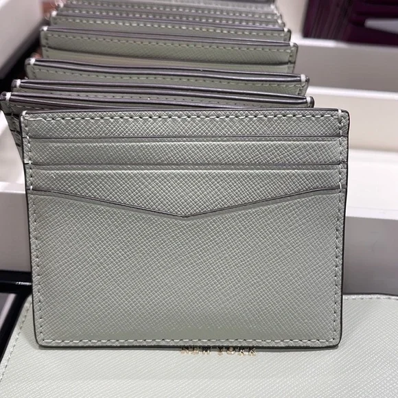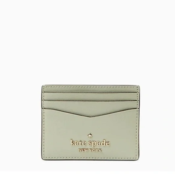 Kate Spade Staci Small Slim Card HolderSage Bundle Product descriptionHere's a place to stash concert tickets, photographs, secret love notes...oh, and credit cards of course.DETAILS•3.0" h x 3.9" w•saffiano leather•ksny metal pinmount logo•two way spade jacquard lining•exterior: 6 credit card slots open middle compartment•dust bag not included•imported•style # wlr0012