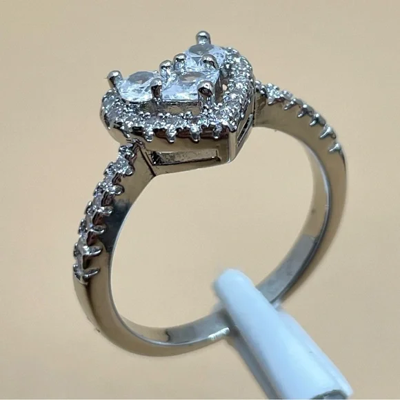 Beautiful Trendy Dainty Heart Halo White Diamond CZ Silver Plated Ring All Stones are Cubic ZirconiasOther listings: cuban paper clip chain link hip hop dainty chunky solitaire carat radiant present zirconia square sterling tanzanite 16” vintage eternity morganite encrusted ruby pave couple’s jewelry setting rare diamonds sapphire promise jewelers green heirloom fairy purple past platinum ring present rainbow nile micro future gem stones baguette delicate heavy shell half bridal baby rhodium set band link 18k australian engagement anklet box zales long emerald cow statement 750 peridot everrealli platinum 925 silver teal 3 brilliant heart sapphire 10k midi stackable 18” flower multi daisy butterfly wrap rose double swirl side jewel moon star love pinky 19” bracelet ear anniversary pinky wide yellow wedding citrine natural tall bridal pearl necklace 20” twisted stone rope sun kay lightweight cream knuckle thin 6 wide paperclip lariat turtle chakra oval amethyst cz 14kt pave watch cross gift low two fancy future huggie stone bangle weight tone white delicate antique clarity bling tri crystal