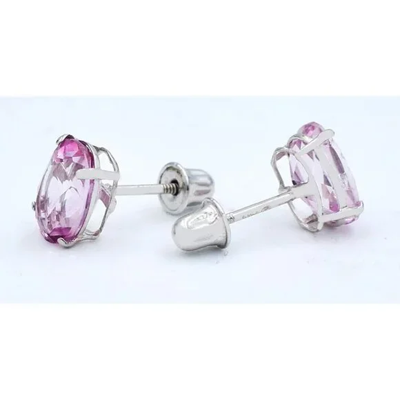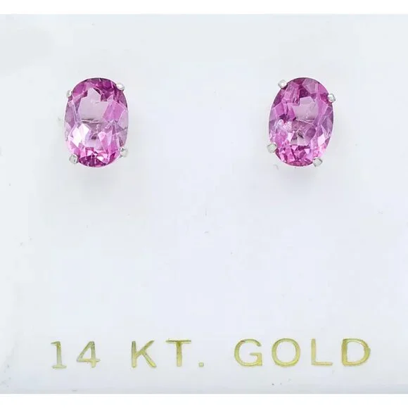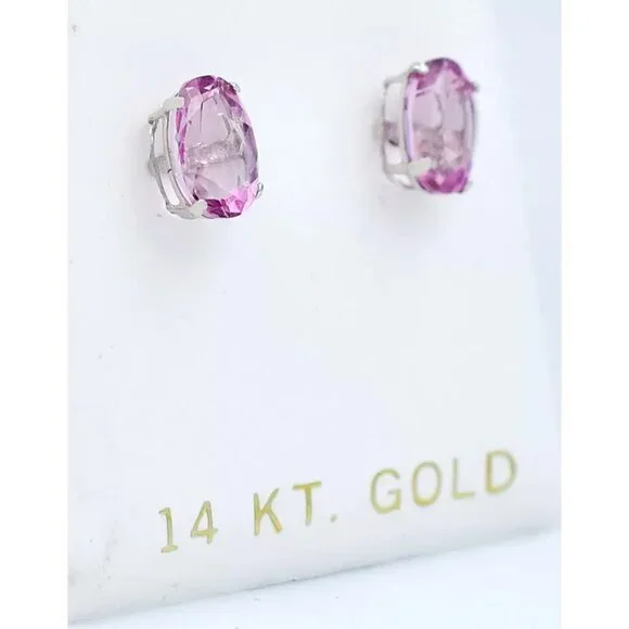 Metal Purity: 14k White GoldCondition: New with tagGemstone Type:2 Genuine pink sapphireTotal ct weight : 2.34 caratsPink sapphire grades,Hue . . . pinkTone . . . medium darkSaturation . . . vividCut . . . very goodSome minor natural inclusionsDimensions: 7 mm x 5mm each gemstone measurementsAppraisal available for a low cost of $25.00 (request this service if you are interested)
