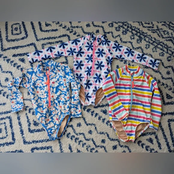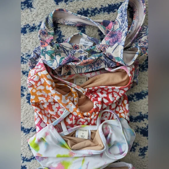 Toddler Girl Swim + Clothing Bundle.Brand: Crewcuts (J. Crew)Size: All are size 2T. (One bathing suit is Gap and is 3T).Condition: All in great, pre loved condition - the last photo shows two swimsuits that have pilling from wear on the bottoms/backside.Please see all photos to see what's included:-3x long sleeve rash guard zip up one piece swimsuits-a two piece bikini-2x one piece bathing suits (one of which is Gap)-2 casual dresses with pocket- a button front floral sun dress- a pair of leggings matched with a cute tiered topstyle tags:#jcrew#crewcuts#ontrend#summerstyle#beachbum#beachbabe#summer#toddlerstyle#boho#casual#beach#vacation