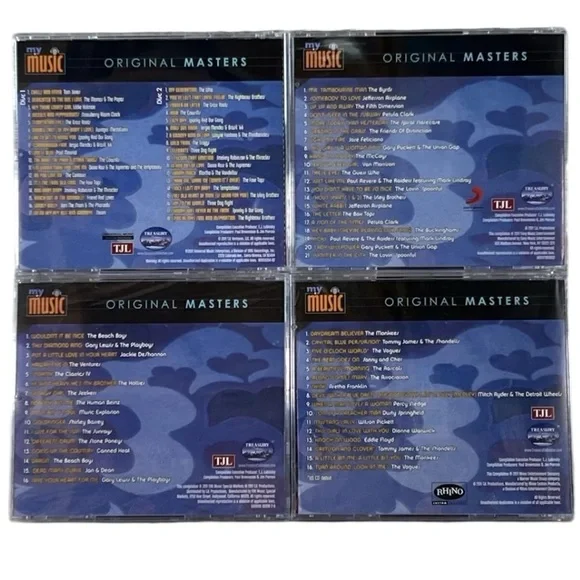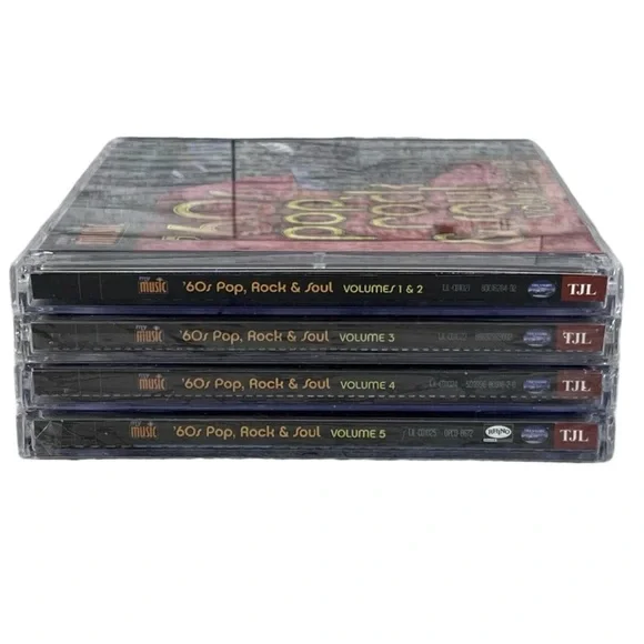 My Music Original Masters '60s Pop, Rock & Soul Vol. 1-5 (5-Disc CD Set) TJL.Volume 1 and 2 is in like new condition! (In same box)Volumes 3,4 and 5 are still factory sealed!Volume 11. CHILL AND FEVER Tom Jones2. DEDICATED TO THE ONE I LOVE The Mamas & The Papos3. HEY THERE LONELY GIRL Eddie Holmon4. INCENSE AND PEPPERMINTS Strawberry Alarm Clock5. TEMPTATION CYES The Gras Roots6. DOUBLE SHOT (OF MY BABY'S LOVE) Swingin' Medallions7. UHE TO GET TO HOW YOU Spanky And Our Gong8. SCARBOROUGH FAIR Sergio Mender & Braril 669. LOVE IS BLUE Paul Mauriat10. THE BAIN, THE PARH & OTHER THINGS The Cowill11. I'M GONNA MAKE YOU LOVE ME Diona Rao & The Jupremes and The Temptations12. DO YOU LOVE ME The Contours13. IT'S THE SAME OLD JONG The Four Tops14.000 BABY BABY mokey Robinson & The Miracles15. REACH OUT OF THE DARKNESS Friend And Lover16. WOOLY BULLY fam The Jhom & The Pharaohs17.0A NA HEY HEY HIS HIM GOODBYE SteamThis is just a few of great songs on this 5 disc set