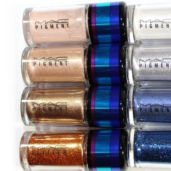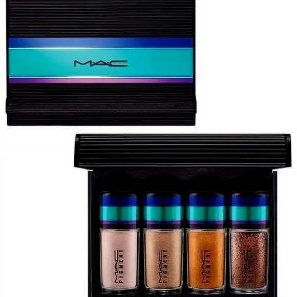 HURRY...ONLY A FEW SETS LEFT!!! NEW!!! MAC 4pc Pigments + Glitter Eye Shadows: NAKED/BLONDE'S GOLD/OUT ALL NIGHT/REFLECTS BRONZE**Irresistibly Charming Pigments and Glitter~GOLD SET (LIMITED EDITION)**Take your Eyeshadow Game to the Next Level with these! Each of the MAC Eye Shadows is High Pigment giving you Incredible Coverage + A Sparkling Glitter! You're receiving 4 of them! MAC Set comes in a Special Edition Black with Turquoise, Purple and Blue Metallic Hard-Shell Box/Case!4 X COLORS INCLUDED:~PIGMENT: Naked (Light Beige w/ Hints of Peach/Pearl Finish)-0.08oz~PIGMENT: Blonde's Gold (Light-Medium, Sand Gold/Frosted Finish)-0.08oz~PIGMENT: Out All Night (Medium-Dark, Brown Gold/Metallic Finish)-0.08oz~GLITTER: Reflects Bronze (Orange-Bronze Glitter)-0.07oz