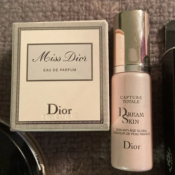 Travel size Miss Dior NEW and makeup bundle: Dior Radiance mini (I used it twice), NYX Mineral Powder 3/4 or more full, Fairy Tale eyeshadow quad (Lightly used), The Creme Epic Lash Glue Liner NEW,Flower Seal the Deal setting spray (used twice).Just never used these much but are great little products.Bundle and Save - Smoke Free Home2 or more %15 off bundles