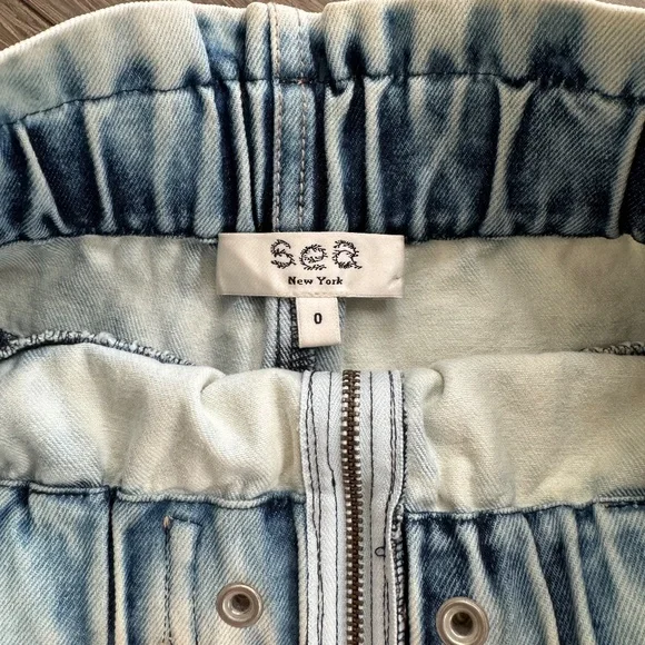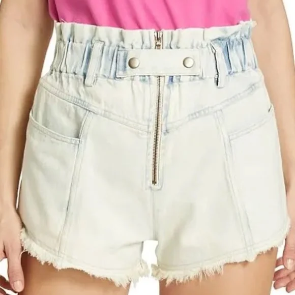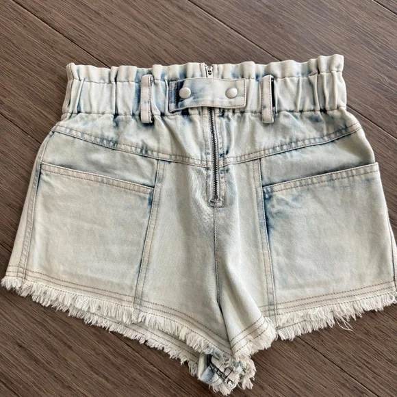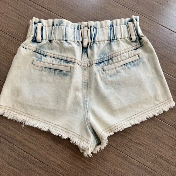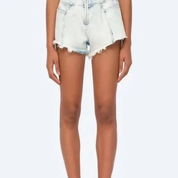 The SEA Birdie Bleached Denim Shorts are an update on jean shorts you've been looking for. You'll love the high rise with a belted waistband paired with the frayed hemline in a light wash. Wear yours with a tank tucked in. Fits true to size, take your normal size Denim shorts High rise Belted waistband Frayed hemline 100% Cotton
