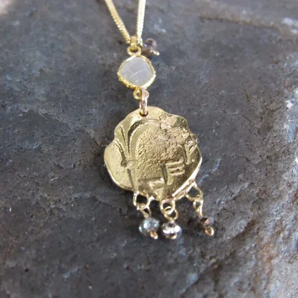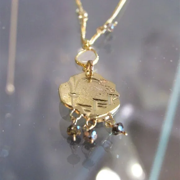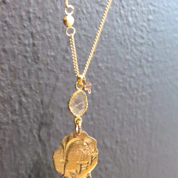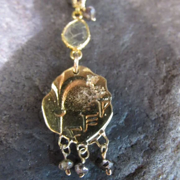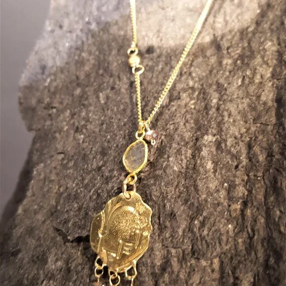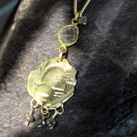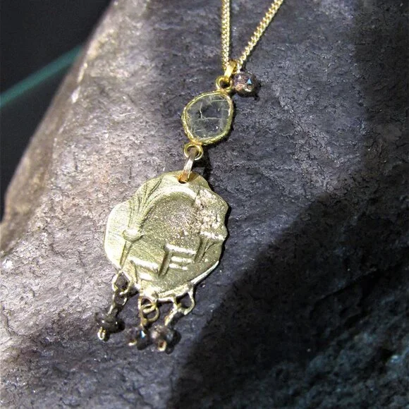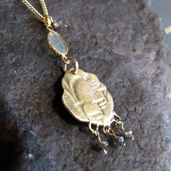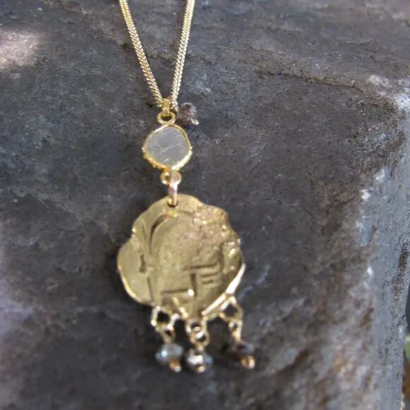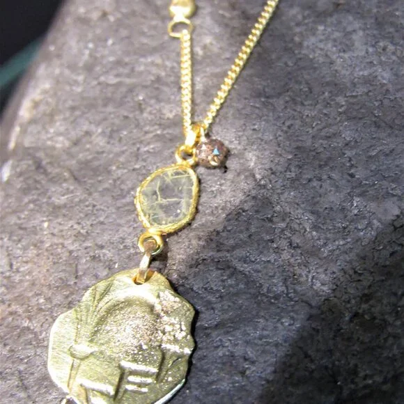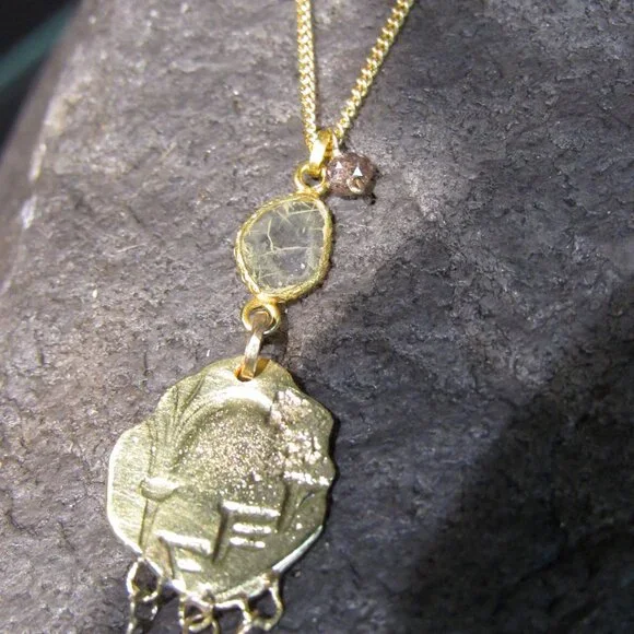 Necklace details:• The necklace made from 14 karats solid yellow gold.• Chain length: 17.7inch/ 45cm'.• 1 Rough diamond 1.60ct'. • 3 Rough diamonds 0.04ct' each.Special gold necklace bezel set with a big round rough diamond on the center and Three diamonds hanging on the chain.In addition two drops of gold on the chain.The yellow gold frame highlights the beautiful color of the rough diamond.Hand-made, one of a kind.A delicate and timeless, gift that each women like to have.Chain available in all sizes, color gold and karat and matte or Shining finish.IF YOU WANT A CUSTOM necklace please contact me before purchase.When I write Handmade I really mean it. each piece is hand-made with great pleasure and love. I love to make jewelry. Apparently, I inherited the love to make jewelry from my father that inherited it from his father, my grandfather.Procedure for making this item:• This item will need 3-5 business days to finish.• If sending as a gift, please provide the address of the recipient, your personal message to the recipient. We will send it directly to him or her with a gift card and wrapping.More necklaces in our store, you are welcome.Thank youAnat❤️❤️❤️