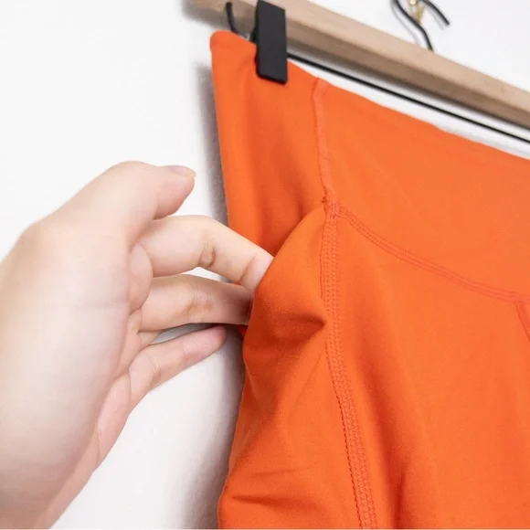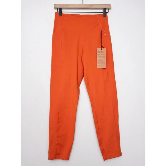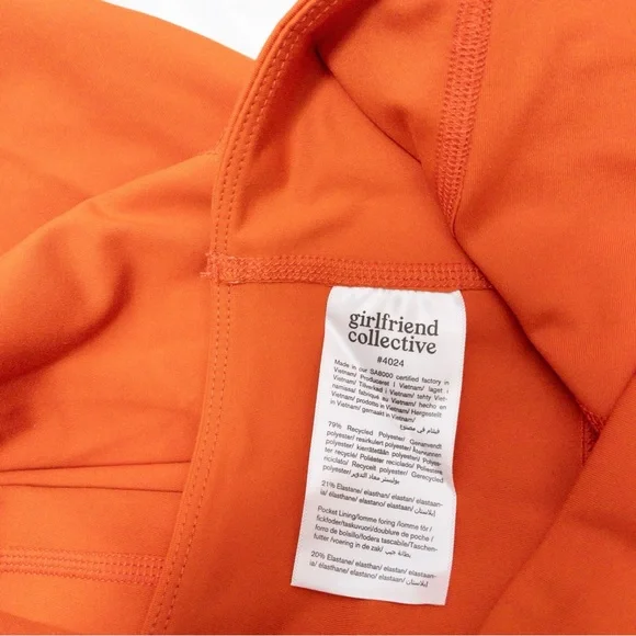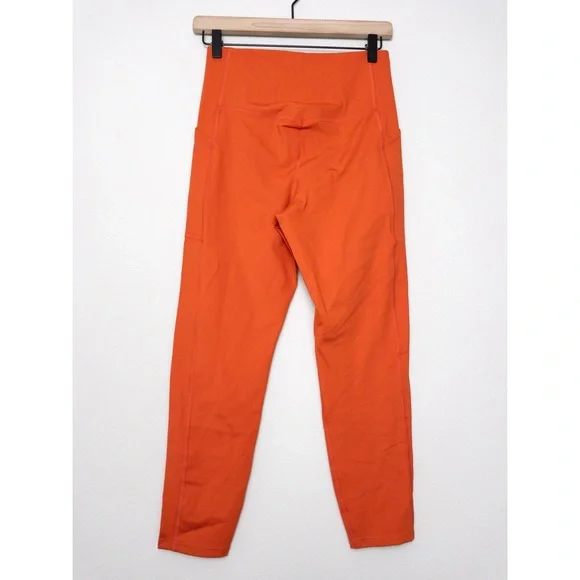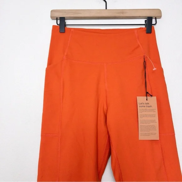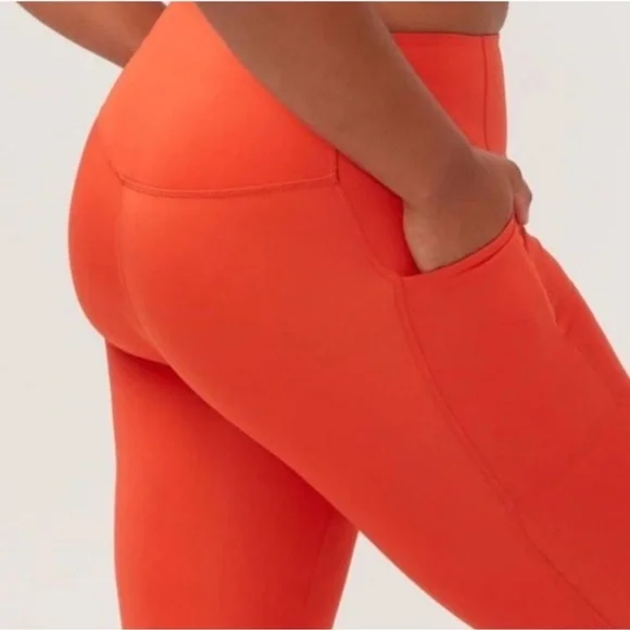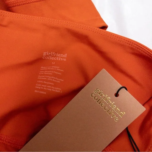 Girlfriend Collective Compressive 7/8 High Rise Pocket Legging, size M in Burnt Orange. $98- Limited Edition colorwaynew with tags with faint pen mark on backmeasurements : 23.75" inseam, 11" rise#0225P-7.7compressive, squat-proof, ultra high-rise sustainable leggings with dual side pockets- smoothing, sculping support- recycled water bottles (RPET)/spandex- designed for high impact workouts- two deep side pockets- small hidden back pocket- four-way stretch- style #4024
