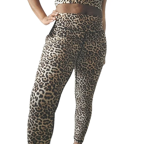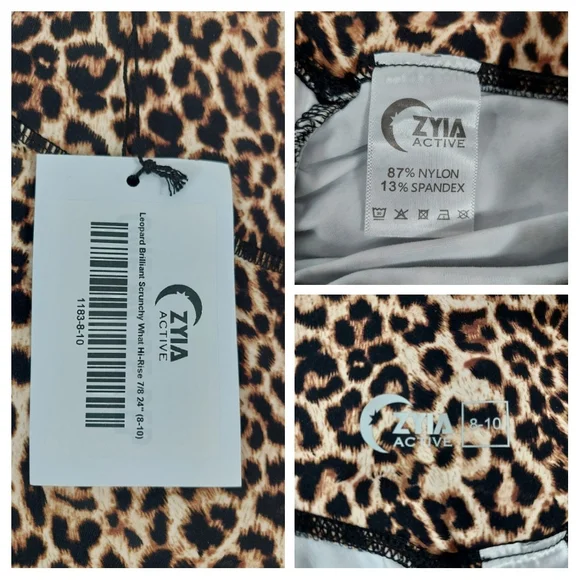 Zyia Active Leopard Brilliant Scrunchy Leggings-What Hi-Rise 7/8. Size 8-10. Leopard print leggings with cinching on the buttocks area (see video for closer view). High waist and stretchy.Measurements are approximate. Leggings in new condition with tags attached. BONUS! Leopard halter top included with your purchase.Waist: 13”In seam: 24”Length: 32.5”Front rise: 11”Material: 87% nylon 13% spandex Stretch:YesN-10479/2**Halter top measurements:13” chest 9” length. Size Medium, brand Arizona Jeans**