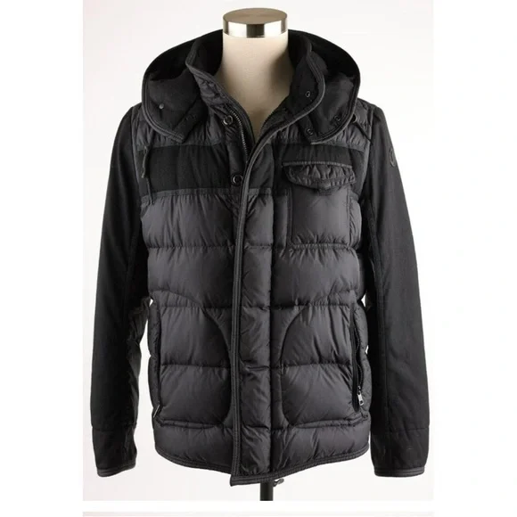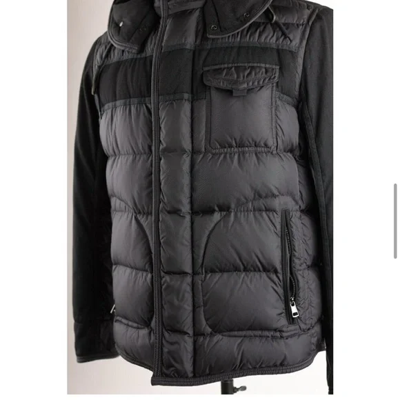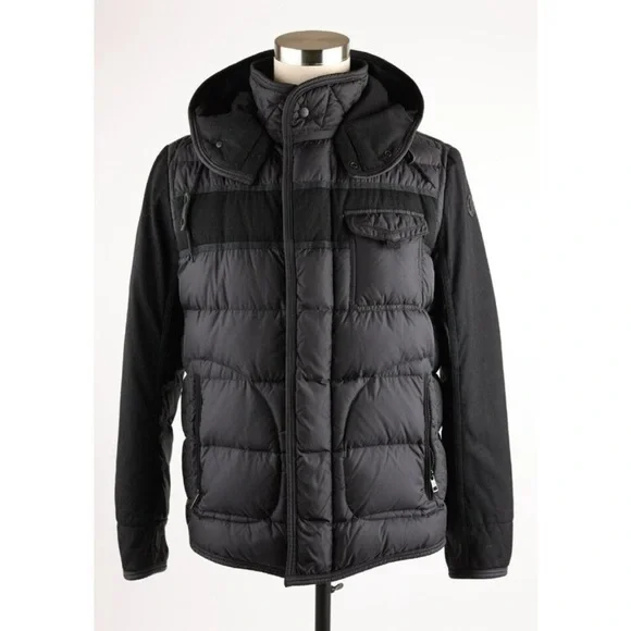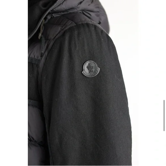 Great condition. Only worn a handful of times.Mens size 2 which fits like a MediumSnap-detachable drawstring hoodStand collarFront two-way zip with concealed button closureChest snap-flap pocketLong sleeves with recessed ribbed cuffsLogo patch on left sleevesTwo side zip pocketsAllover quilted mixed-media designLinedWith featherweight designs and impeccable quilting, Moncler blends Italian flair with the finest quality down insulation.ImportedMaterials & Care100% polyamide; contrast: 100% virgin wool; trim: 100% leather; fill: 80% down/20% feathersDry clean only